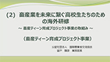 さて、本年の発表会ですが、令和6年度に終了しました65件の事業の中から、4つの事業を選定させていただきました。いずれも畜産農家が抱えております喫緊の課題への取り組みであり、大変興味深いものとなっております。皆様、是非、動画配信をご覧ください。